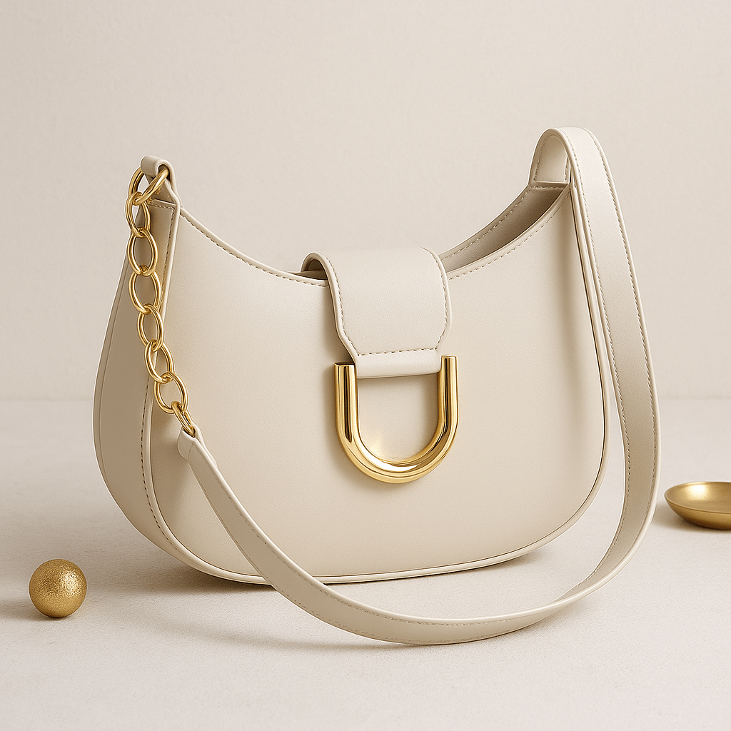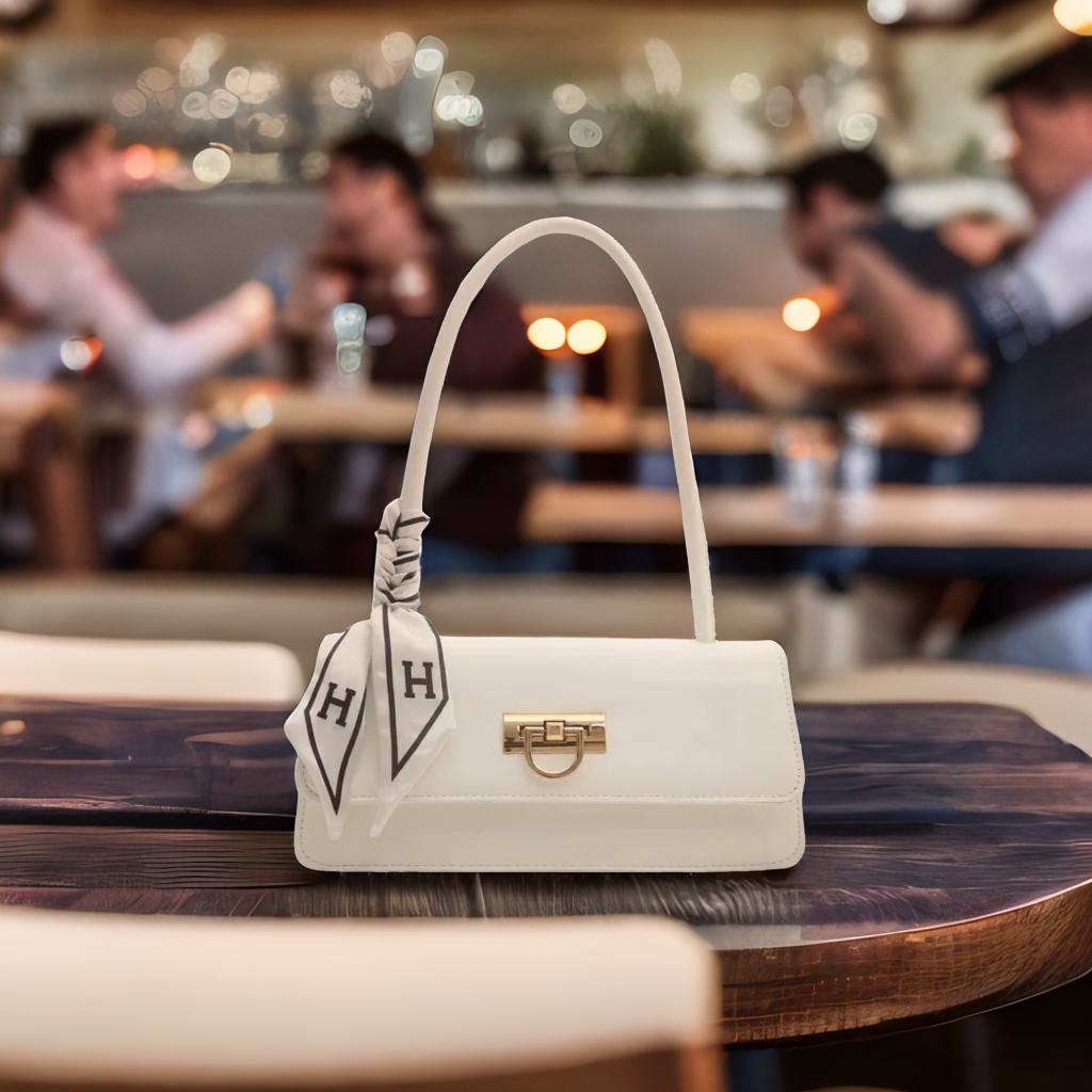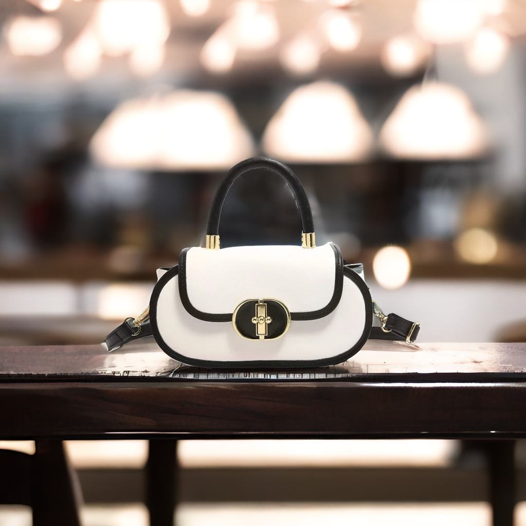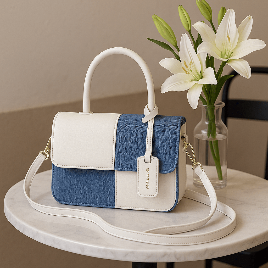 Elegant Two-Tone Faux Leather Handbag – White & Denim Blue