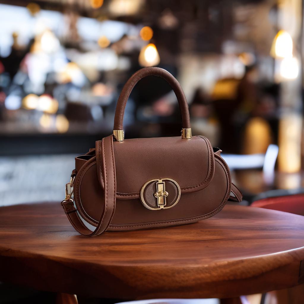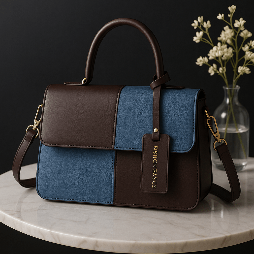Elegant Two-Tone Faux Leather Handbag – Blue & Chocolate Brown